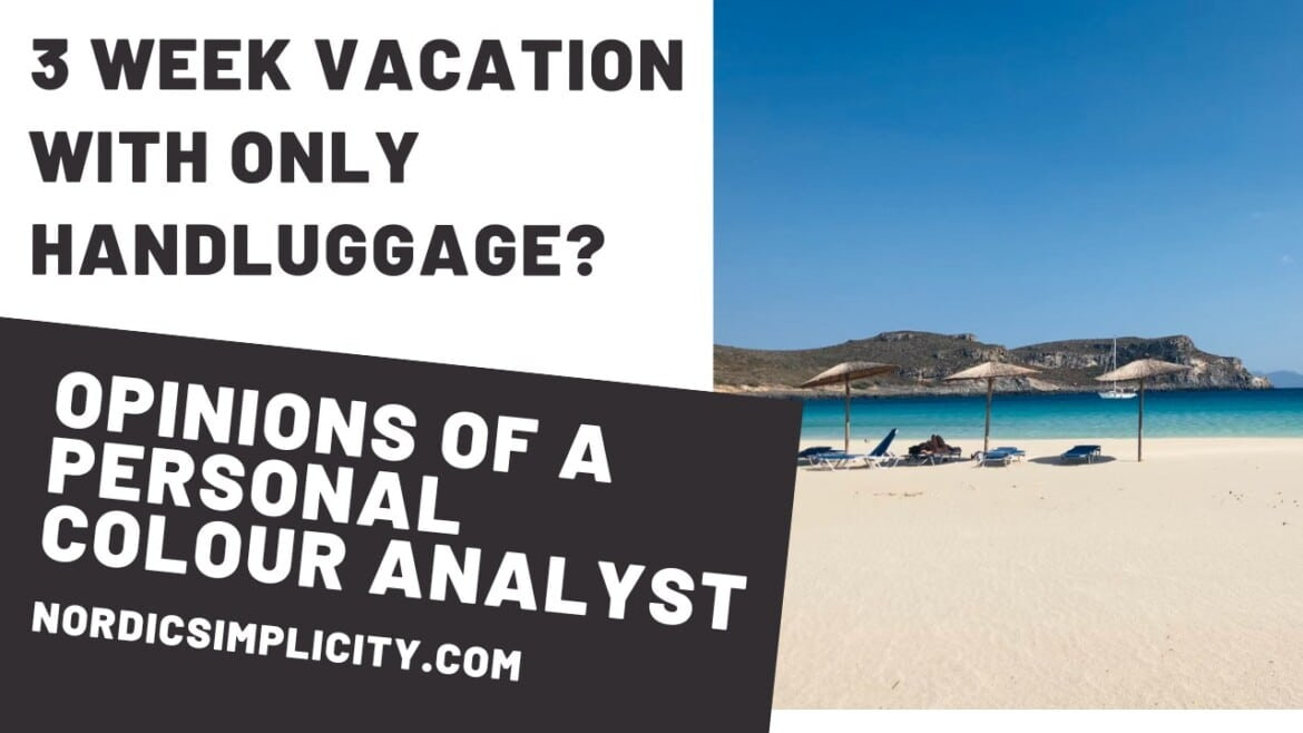 Totally agree about the soft bag – I think they also hold more because you can squish things into the corners better using the give in the fabric! ;-). I would ditch two or three of the tops, one dress, the cover-up thingy (a dress works fine) and the skirt to make room for the underwear, books, knitting, toiletries, handbag, tablet, chargers, snacks… And I would take hand-wash and a washing line and pegs because 21 pairs of knickers waste a LOT of space: I’d take a week’s worth and wash twice. Love the colour scheme and you’ve really nailed it with the travel outfit.