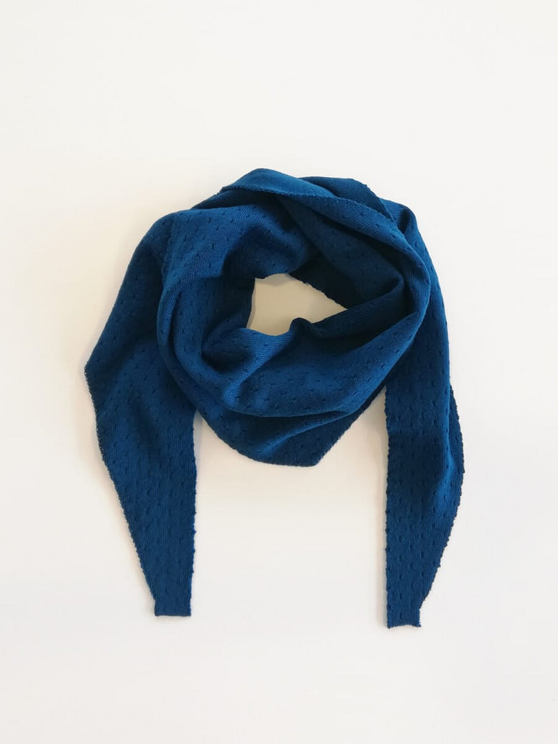 It’s a bandanna, headscarf, small shawl all in one, made for Nordic Simplicity by LEIK knitwear, in Norway.