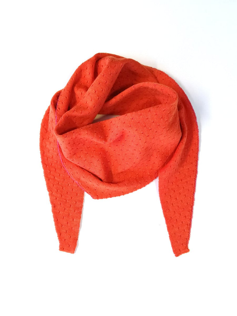 It’s a bandanna, headscarf, small shawl all in one, made for Nordic Simplicity by LEIK knitwear, in Norway.