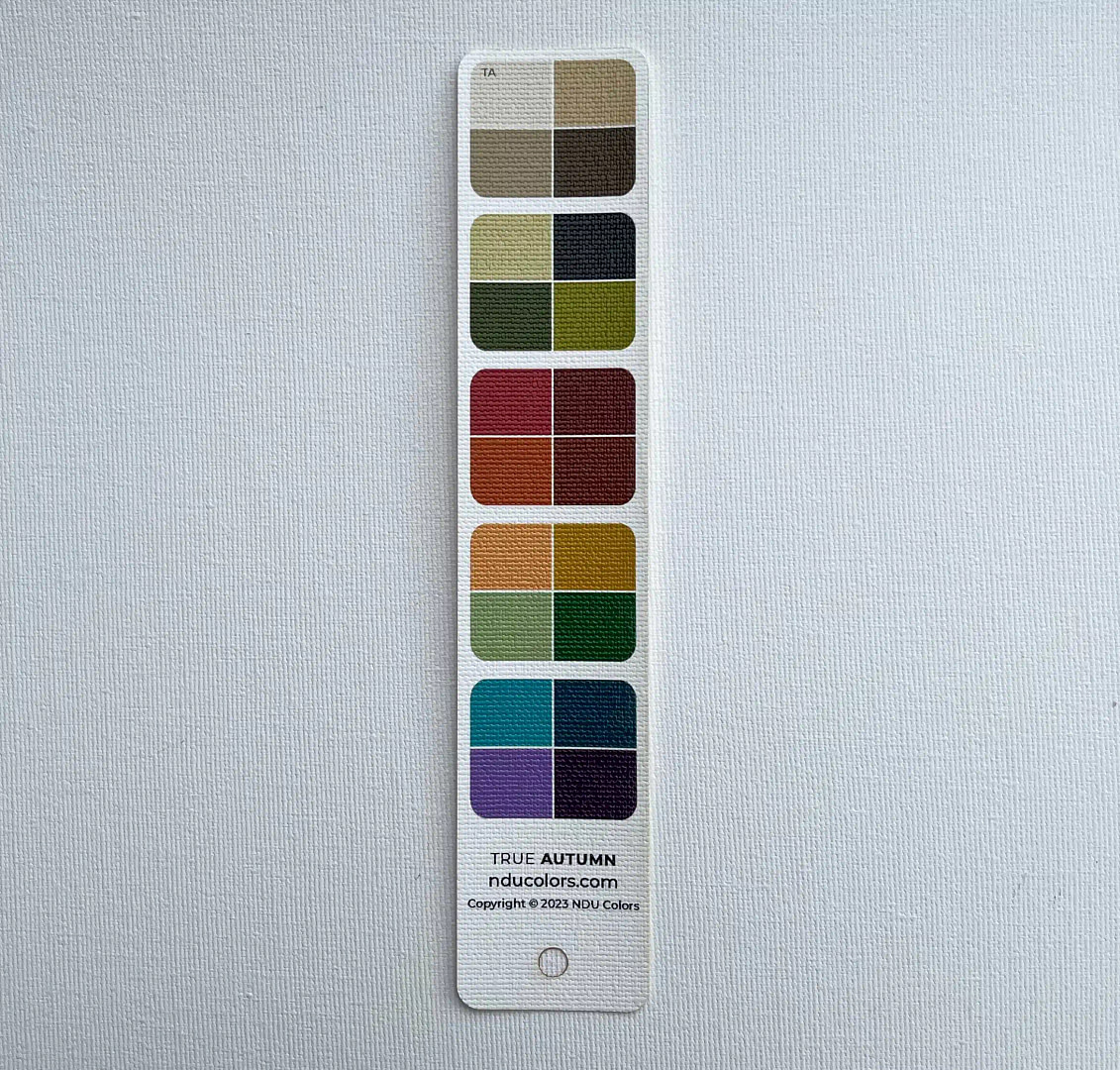 NDU colors Harmony Strips are perfect for when you quickly want to harmonise a piece of fabric, a dress you are thinking of buying, yarn for your next knitting project… It’s really smart to own a Harmony fan for your own Season, plus one for each of your neighbouring Seasons. That way you can quickly spot if the colour is more in tune with one or the other, without carrying bulky fans in your purse.