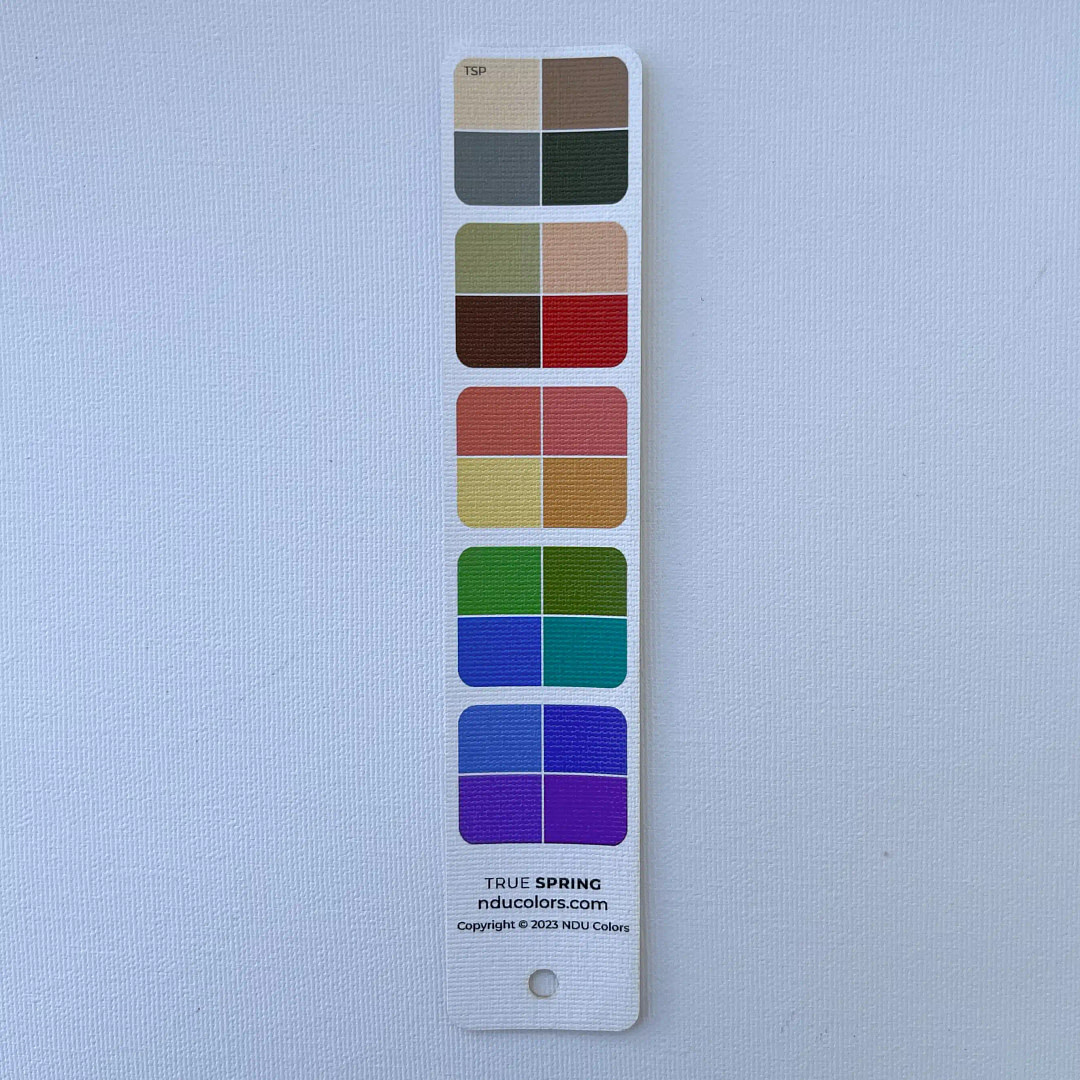 NDU colors Harmony Strips are perfect for when you quickly want to harmonise a piece of fabric, a dress you are thinking of buying, yarn for your next knitting project… It’s really smart to own a Harmony fan for your own Season, plus one for each of your neighbouring Seasons. That way you can quickly spot if the colour is more in tune with one or the other, without carrying bulky fans in your purse.