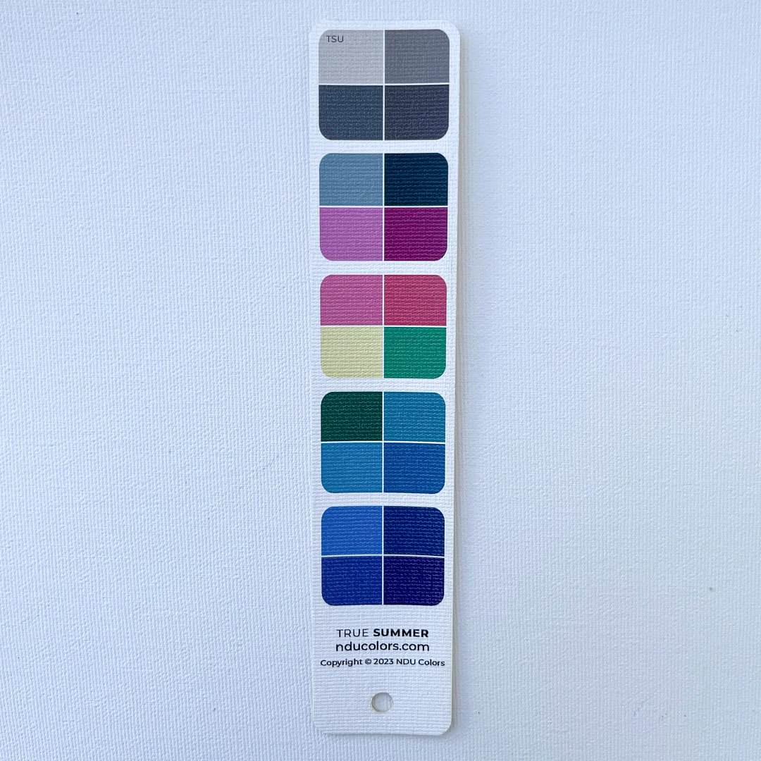 NDU colors Harmony Strips are perfect for when you quickly want to harmonise a piece of fabric, a dress you are thinking of buying, yarn for your next knitting project… It’s really smart to own a Harmony fan for your own Season, plus one for each of your neighbouring Seasons. That way you can quickly spot if the colour is more in tune with one or the other, without carrying bulky fans in your purse.