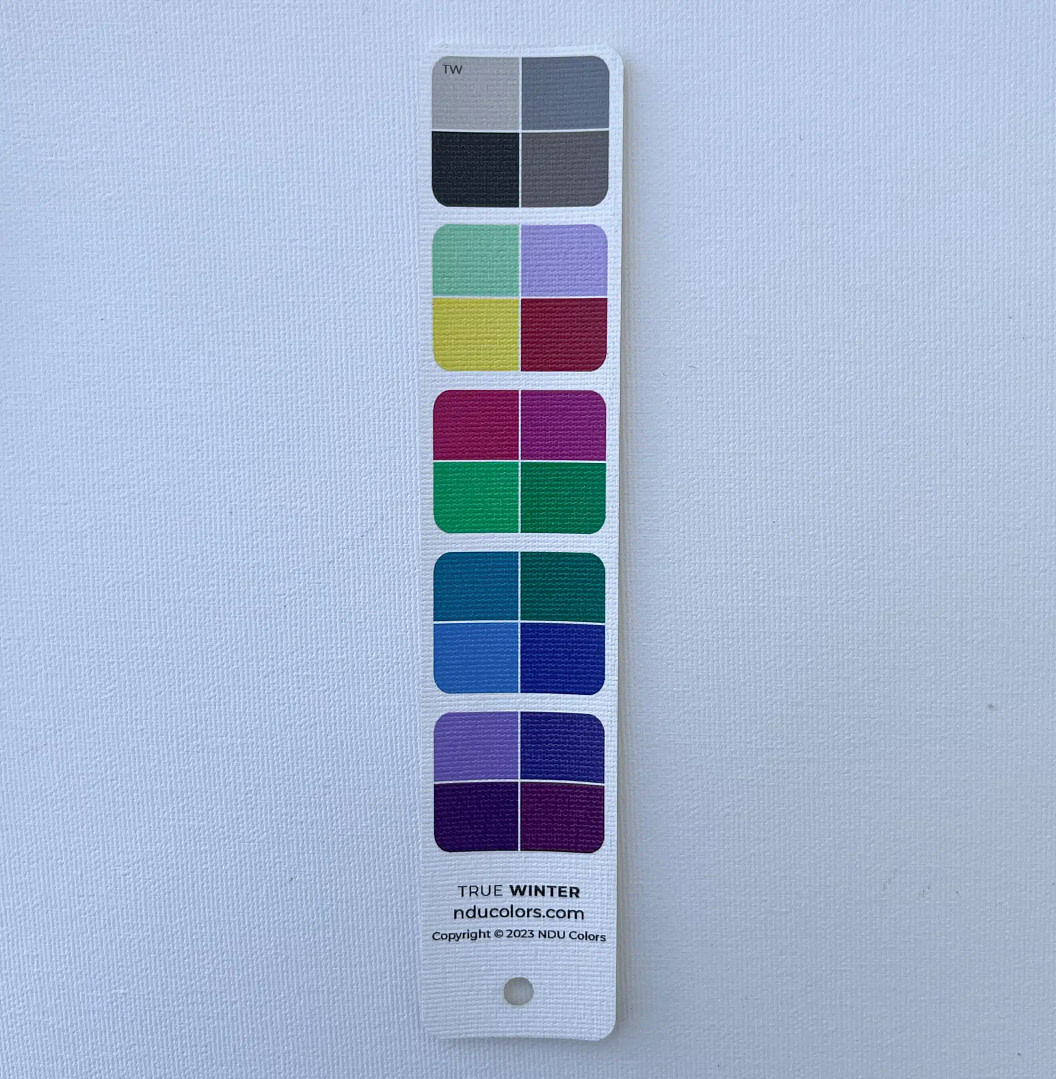 NDU colors Harmony Strips are perfect for when you quickly want to harmonise a piece of fabric, a dress you are thinking of buying, yarn for your next knitting project… It’s really smart to own a Harmony fan for your own Season, plus one for each of your neighbouring Seasons. That way you can quickly spot if the colour is more in tune with one or the other, without carrying bulky fans in your purse.